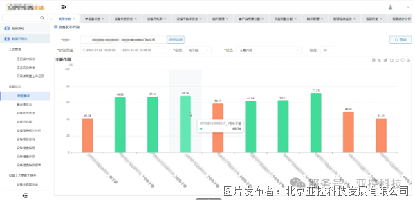 ●在生产管控方面,系统提供关键工艺数据支撑,实时监控设备核心指标,助力质量过程控制与主机手考核,质量异常时可快速追溯关键参数,提升问题处置效率。